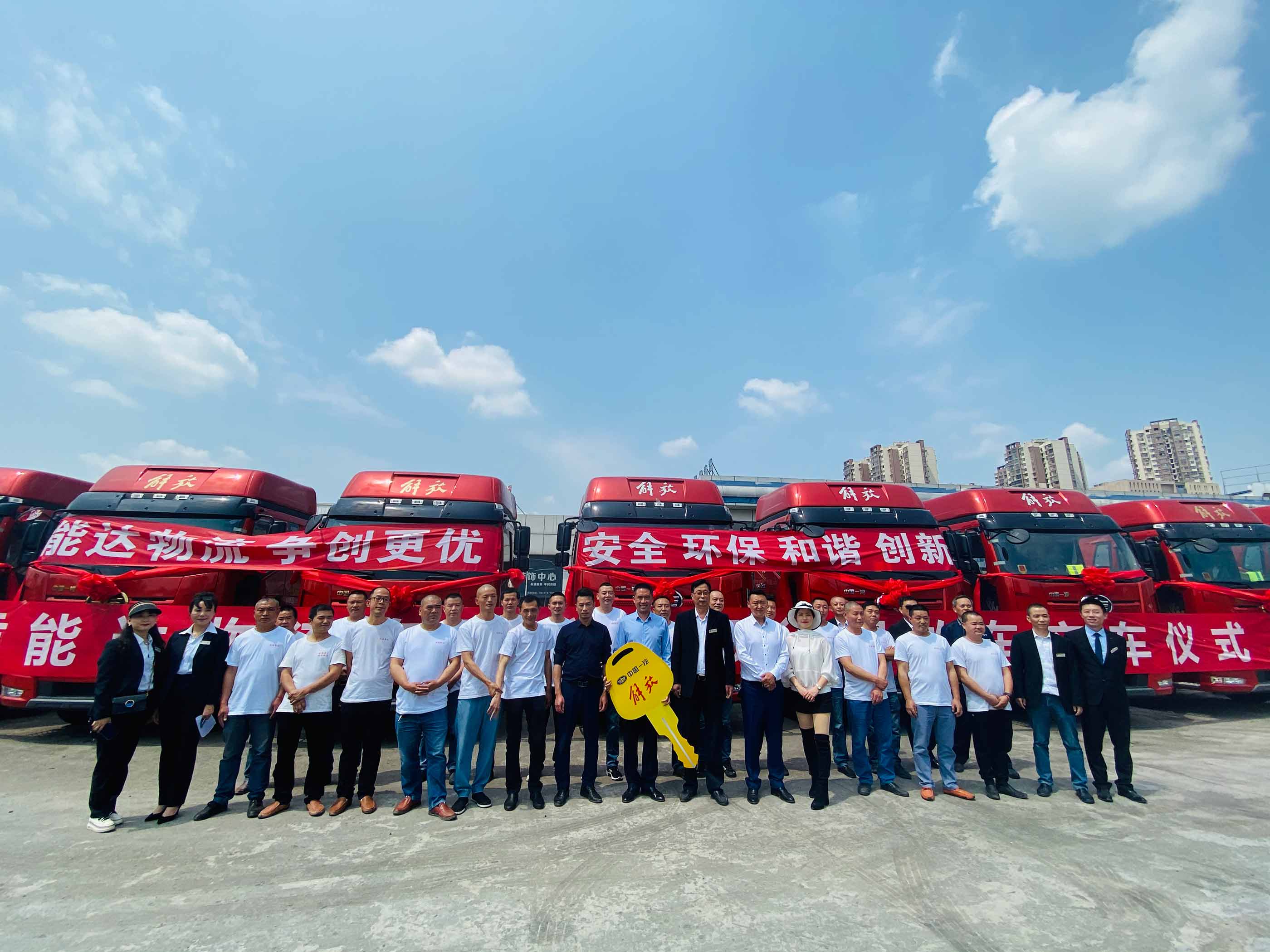 自貢能達物流有限公司因業(yè)務(wù)所需,為更好的服務(wù)客戶(hù),在飛馳車(chē)業(yè)一次性采購15輛解放重型運輸車(chē),于2020年4月10日舉行隆重的交車(chē)儀式。能達公司總經(jīng)理卓支偉,飛馳公司副總經(jīng)理田建春到場(chǎng)參加此次儀式。